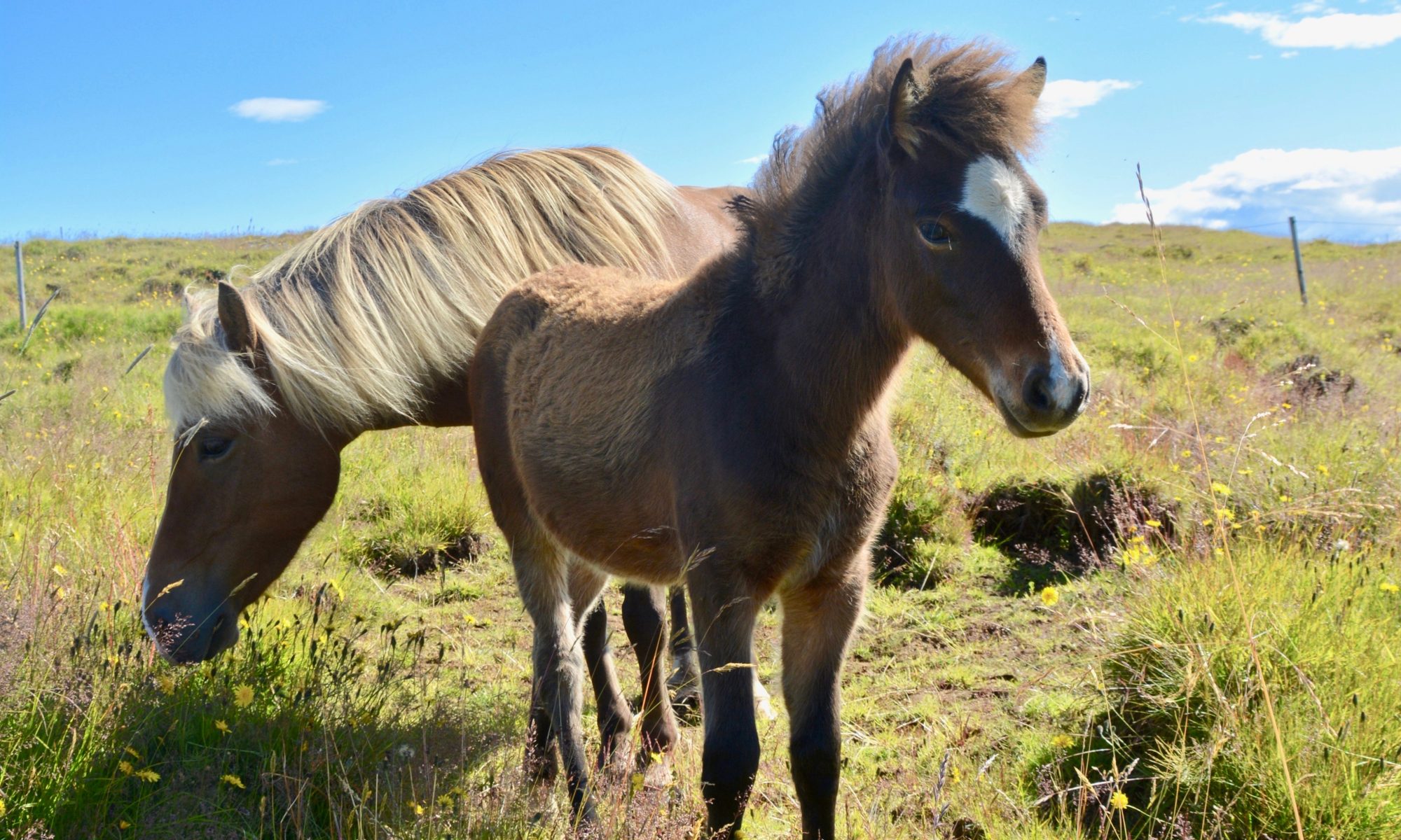 🇩🇰 Denne smukke røde hoppe, med stor stjerne og snip, blev født 13. juni. Moren er Óöld og det er hendes tredje føl. Det er også det tredje og sidste føl, vi får i sommer. Alle tre var hopper og faren til dem alle tre er Rustikus fra Dýrfinnustaðir.