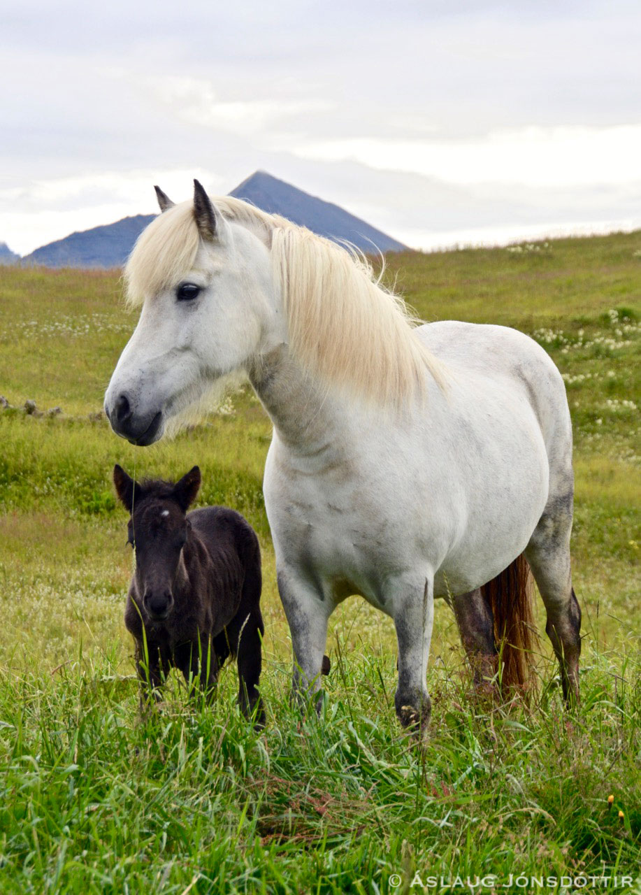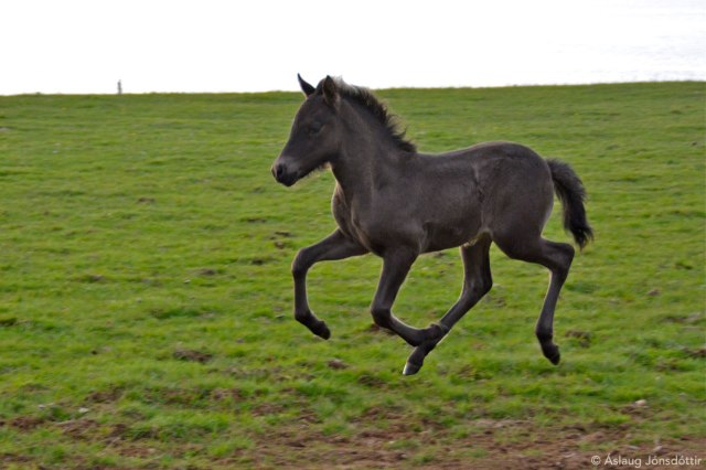Ábati is a son of the daughter of Ágústínus, Árún from Mosfell, who on the mother’s side is from an old breeding line of gray horses in Iceland (Stafnsættir). Ábati is big and lightly built, and will hopefully add to the fast growing flok of great riding horses of his father, Lord from Vatnsleysa.