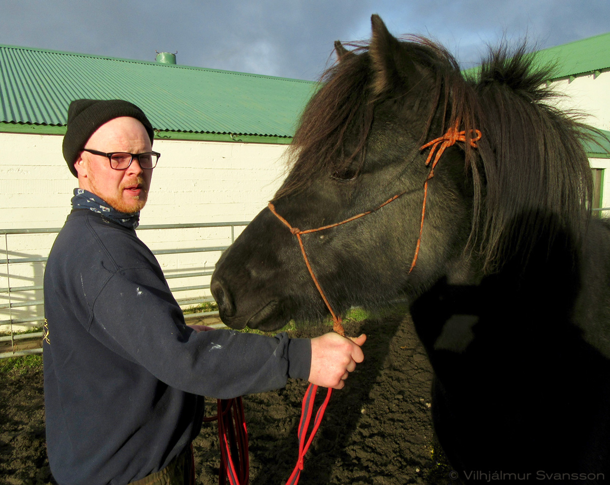 Rustikus, who has just joined the flock in Melaleiti, is son of the honorary prized breeding stallion Hágangur from Narfastaðir (8.31) and Hekla from Eskifjörður (8.30), daughter of Erill from Kópavogur. We own Rustikus together with our friend and horse breeder, Ingólfur Helgason at Dýrfinnustaðir in Skagafjörður. The name Rustikus comes from Vilhjálmur and Ingólfur’s common ancestor, Rustikus Þorsteinsson (1684-1762).