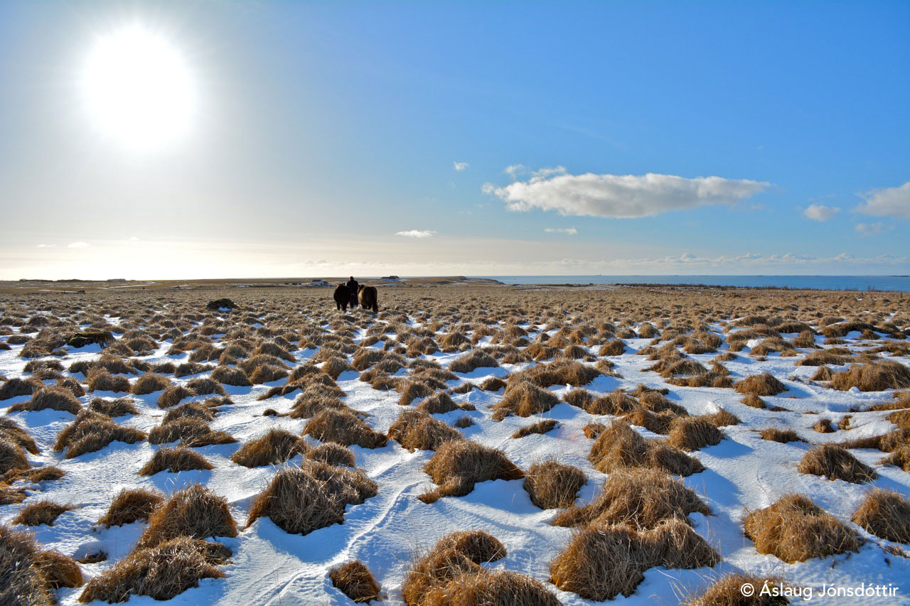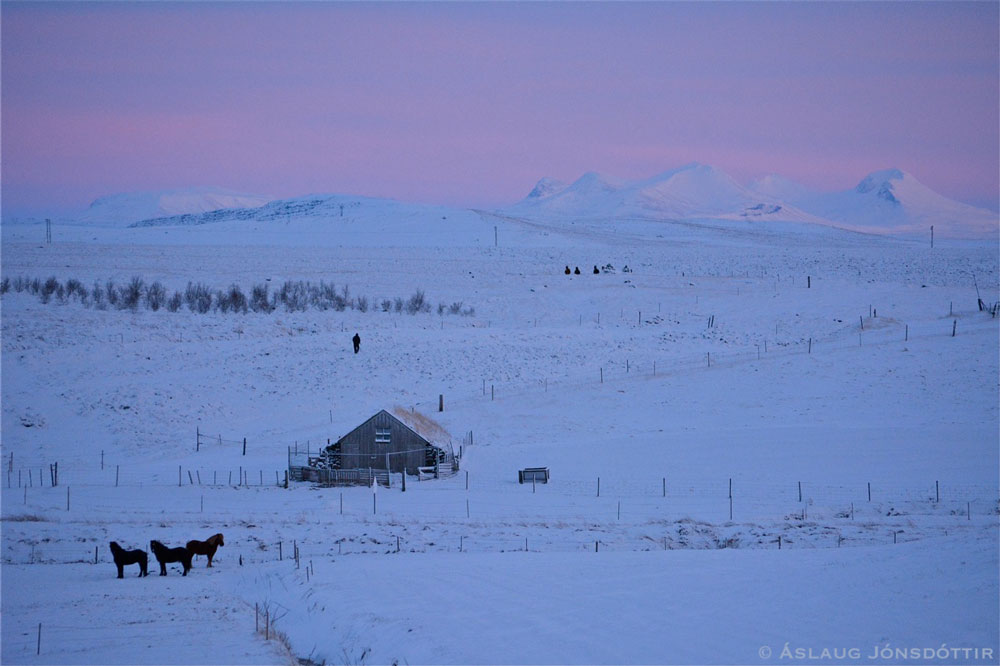 Winter in Melaleiti. Light is scarce, all colors blue … The horses are doing fine in their thick winter coat. We went Christmas tree hunting in Skorradalur, see Áslaug’s blog here.