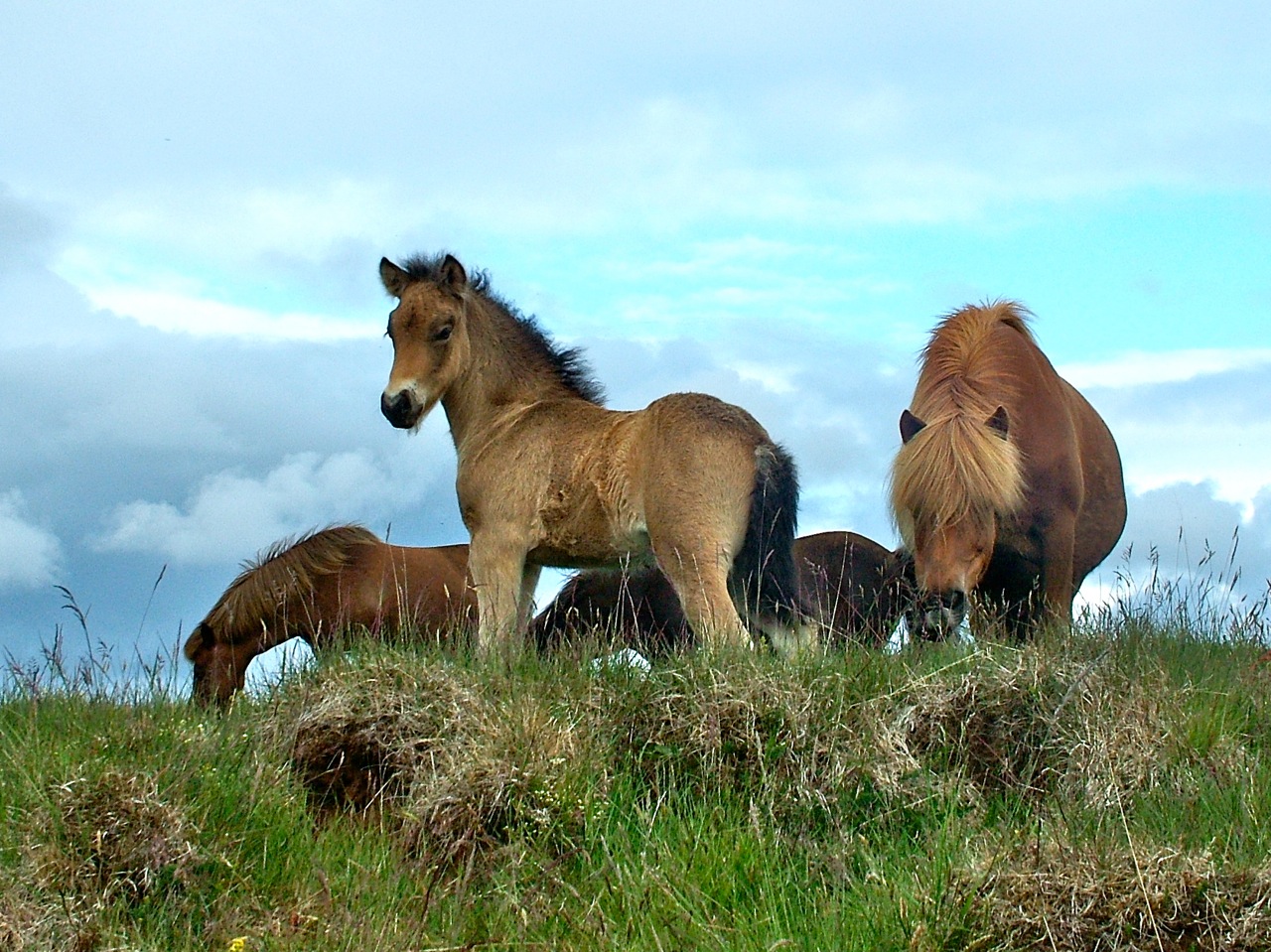 Føllene har vokset, den ældste er også snart 3 måneder gammel. Seks føl bliv det i år. Fire er efter Árelíus fra Hemla, (efter Ágústínus frá Melaleiti): Kaleikur efter Messa, Spraki efter Spekt, Glögg efter Glás og Dýrð efter Dýrfinna. Der til er det Bóseind efter Veröld og Lord fra Vatnsleysa og Dálkur efter Runa og Hnokki fra Dýrfinnustaðir. Fotos af Dýrð, som blev født for ca en uge, er her. På fotoet foroven: Spraki.