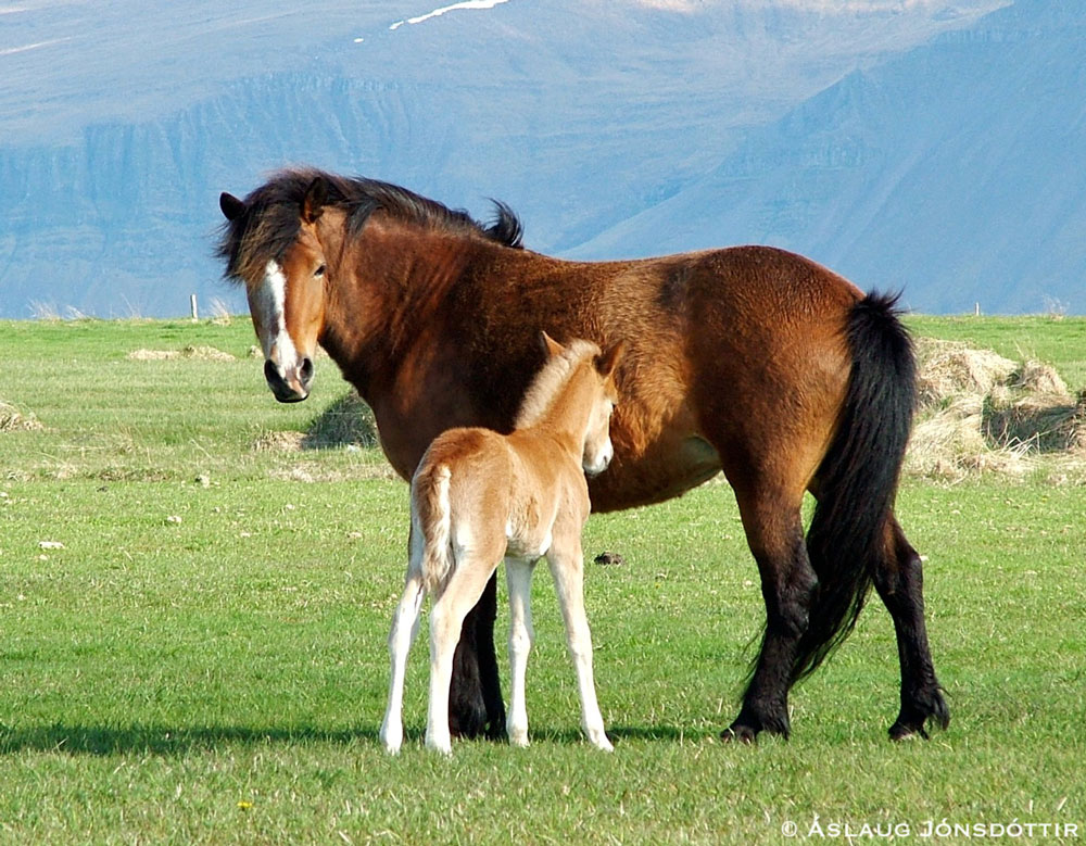 Veröld frá Dýrfinnustöðum með folaldi í maí 2009