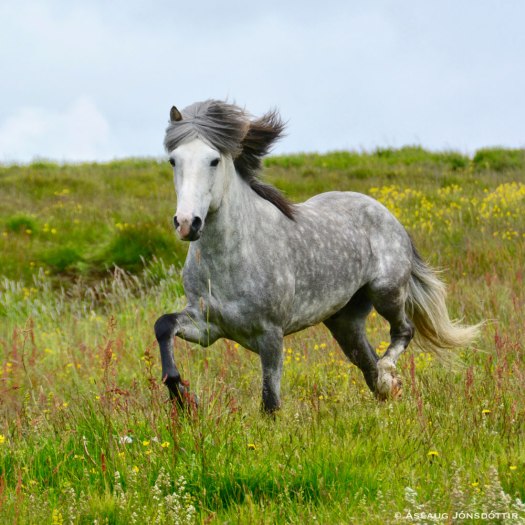 Bagall nød frihed og grønne marker ved hjemkomst til Melaleiti i går. Et selskap af en hoppe gjorde besøget ikke ringere. Bagall er gråskimmel 6 årig hingst, med blis og hvide sokker (bærer af splash-white). Her kan man læse mere om Bagall og se flere fotos.