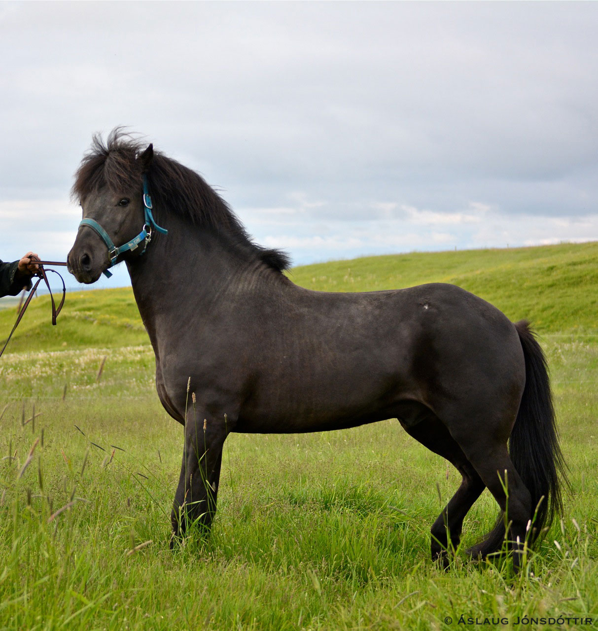 Meistari fra Melaleiti er en 3 årig hingst efter halvsøskendene Gregoríus fra Melaleiti og Erla-Birtingur fra Hofsós. Meistari har fået sin opvækst hos Magnús på Stóra-Ásgeirsá lige som mange andre af vores hingste. Magnús har nu i efteråret haft Meistari i en måneds træning og gjort ham rideklar. Han viste sig at være lærenem og medgørlig.