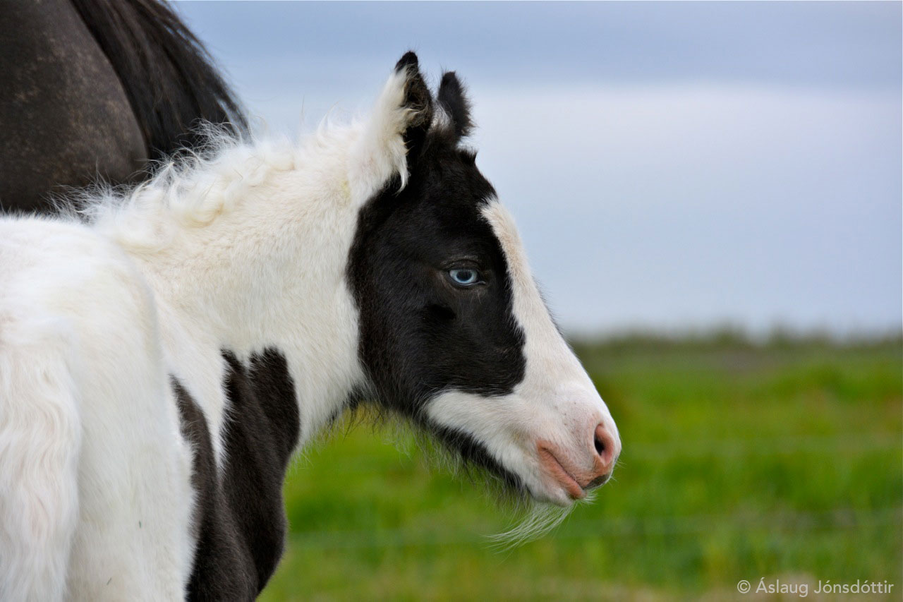 I voldsom regnvejr den 27. maj kom Glás med et sort hoppeføl efter Álfaklettur fra Syðri-Gegnishólar (8.53). De grå og regnfulde dage siden da har godt nok ikke virket stimulerende på Viljahestars fotograf, men disse billeder er taget i en sjælden opklaring den 13. juni. Føllet fik navnet Gnípa som betyder „bjergspids“ eller „klippetop“ og henviser også til faren, Álfaklettur som betyder „Alfe-klippe“. Klart vil vi gerne til tops med Gnípa!