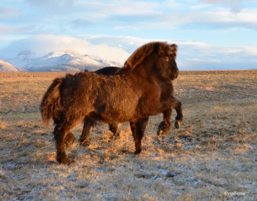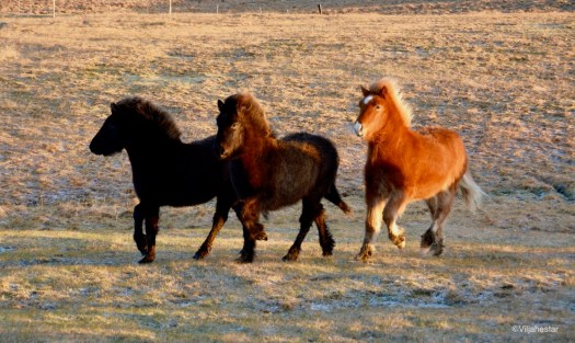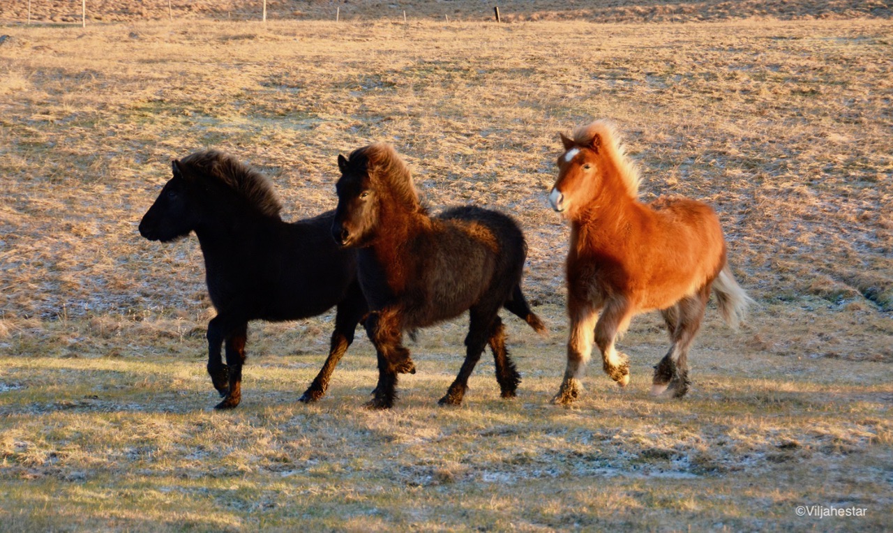 🇩🇰 Det er stadigvæk vinter med kolde dage, men hesteflokken i Melaleiti trives godt under vinterfodringen. Føllene fra sidste år er lovende og vi glæder os til at de snart galopperer ud i foråret. Den mørke tid er ikke ideal til fotografering, men vi har mange gode minder fra vinterens inspektion og forvaltning af flokken. De her snapshots vidner om det. Vi har altid haft smag for usædvanlige og nye navne på vores heste, – i bland med de gamle og gode. Et af disse nye navne er „Fjöðrun“ (Den fjedrende), som vi har gemt i navneposen i et stykke tid. Anledning til at bruge navnet fik vi så sidste sommer når Ágústínus-datteren, Dýrvin fra Melaleiti kom med sit første føl. Fjöðrun har ikke sparet at vise at navnet passer godt til hende: hun er 5-ganger, med rumlighed og luftighed i bevægelserne. Faderen til Fjöðrun er Svartálfur fra Syðri-Gegnishólum, en ukåret søn af elitehoppen Álfadís fra Selfoss.